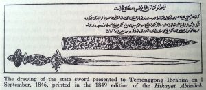 As late as the mid-nineteenth century, Munshi Abdullah describes an elaborate presentation of a state sword (above) to the Temenggong of Johor in 1846 for help given to the colonial government. At the ceremony, the British Governor William Butterworth delivered a speech heavily laden with warnings to Asian peoples who might oppose the will of the British Company.