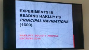 Mary Fuller (MIT), Experiments in Reading Hakluyt’s Principal Navigations (1600). Hakluyt Society Annual Lecture, 21 June 2016, University of Notre Dame London Campus.