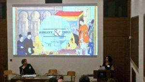 Prof Nandini Das presenting on the place of India in Hakluyt’s Principal Navigations. Hakluyt and the Renaissance Discovery of the World conference, Oxford.